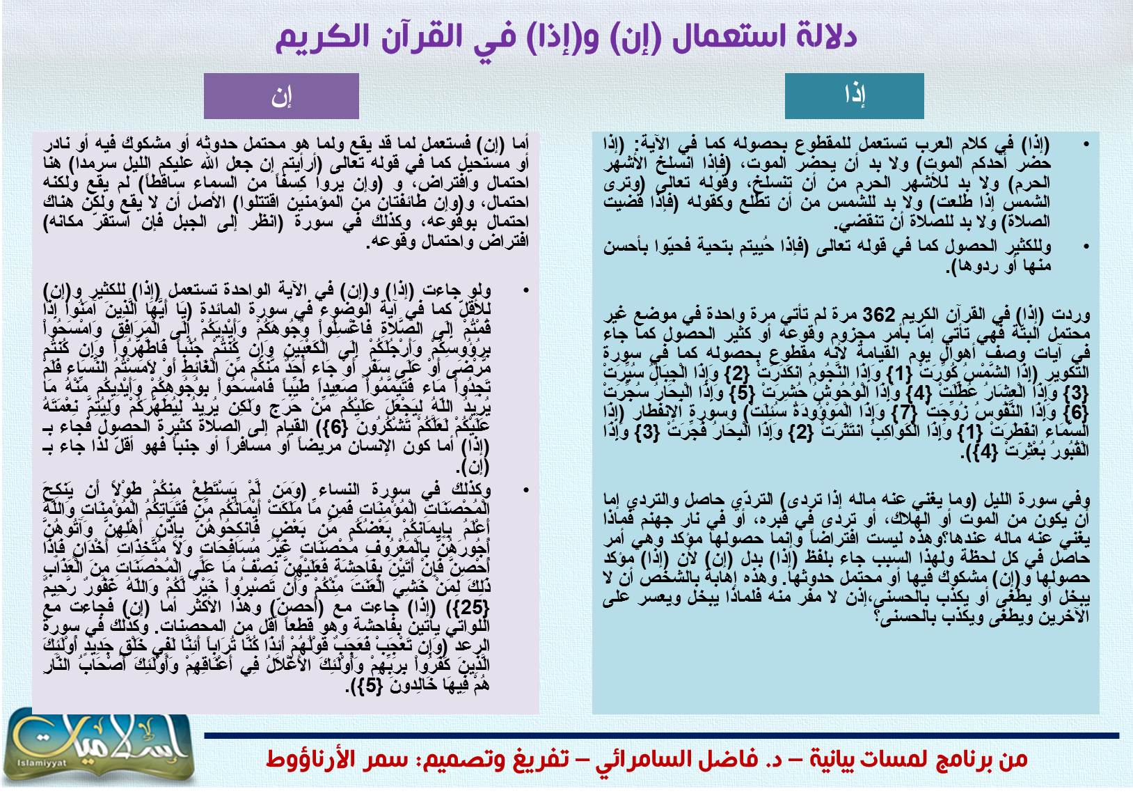 Uzivatel سمر الأرناؤوط Na Twitteru استعمال إن و إذا في القرآن الكريم تستعمل إن الشرطية في المواضع المشكوك في حصولها قال تعالى وإن جنحوا للسلم فاجنح لها وتستعمل إذا