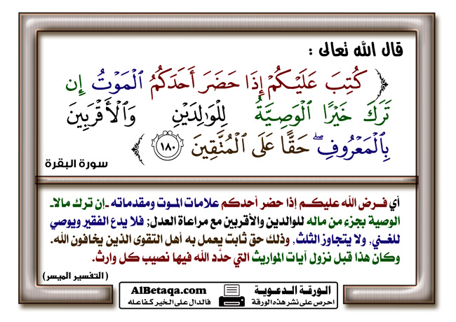 تفسير كلمات القرآن ما تيسر من سورة البقرة الآيات 180 182 موقع البطاقة الدعوي